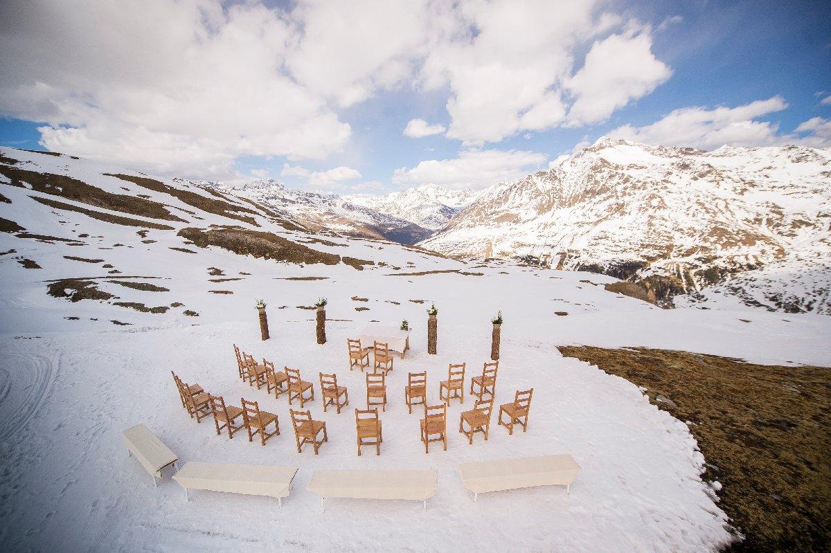 Alpi, come luogo perfetto per il loro matrimonio in alta quota. Ed è proprio qui, con le maestose e scenografiche montagne sullo sfondo, che Antonella e Dario hanno pronunciato le loro promesse nella neve.