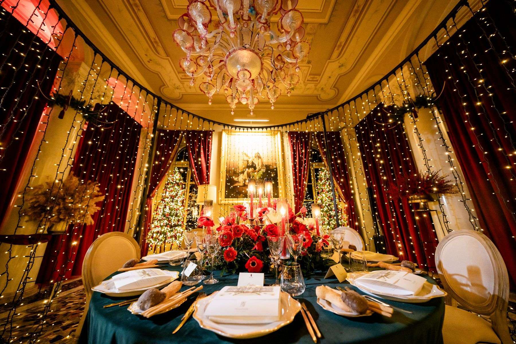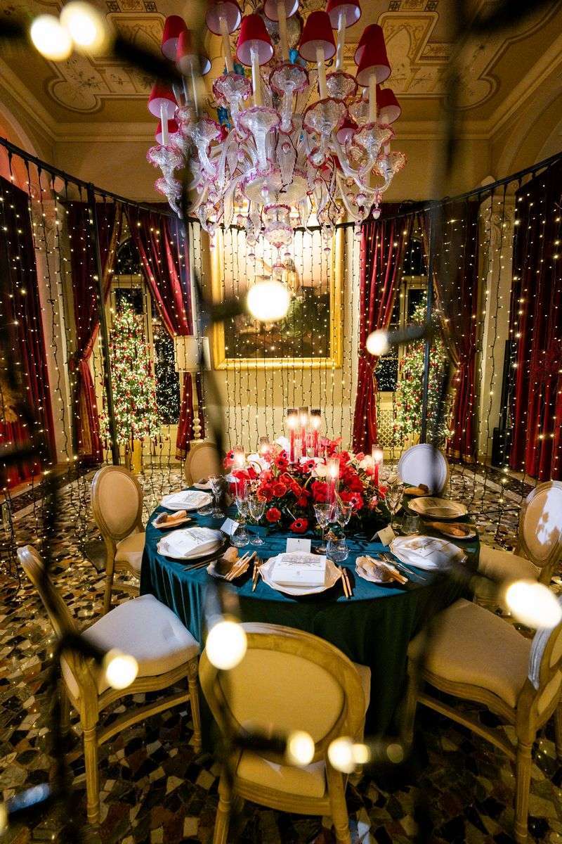 At the conclusion of the event, the newlyweds wished to express their gratitude to the guests by gifting them hand-painted, personalized blown glass Christmas baubles from Bellagio, true works of art. Each sphere bore the names of the couple, the unforgettable wedding date, and the unmistakable image of Villa d’Este.