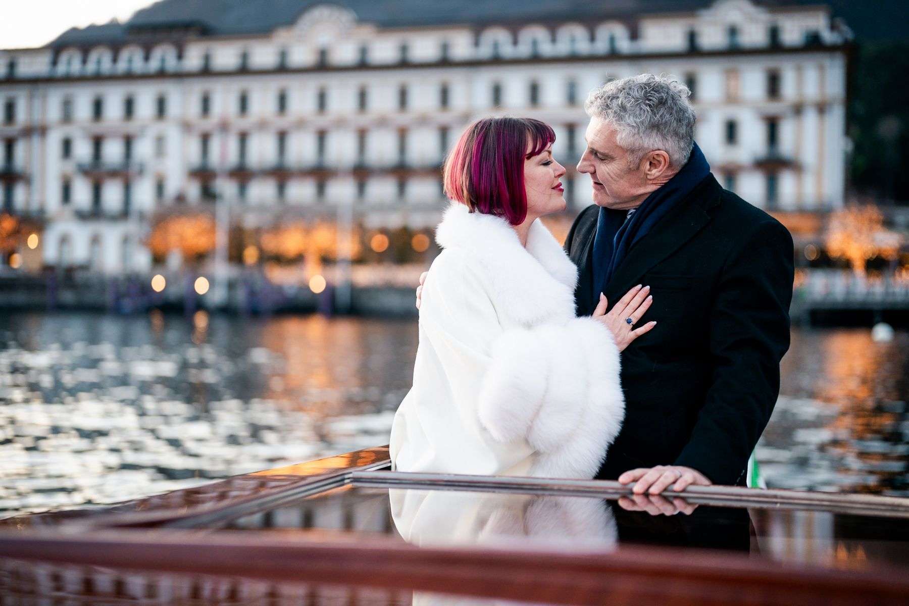 After the emotional ceremony, it was time for the inevitable highlight of any wedding on Lake Como: the romantic boat ride. Aboard the Musa Hotel’s boat, the newlyweds had the opportunity to immerse themselves in the breathtaking beauty of Lake Como in winter and its picturesque views.
