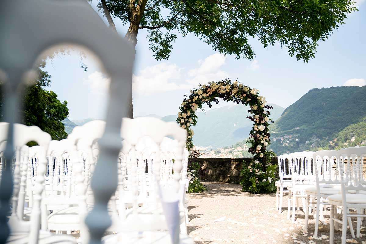 Two people in love, lots of little lights illuminating their faces and beautiful scented flowers: if we think of a romantic atmosphere, these are the things that come to mind, and this is also what Adam and Denise wanted for their most special day. But let’s start from the beginning: our couple chose the luxurious suites of Villa d’Este to spend the days before and after their wedding, while they chose the magical atmosphere of Villa Pizzo to begin their journey together. A perfect wedding is also made so by the people who share this special day with the bride and groom: like the bride’s friends, all beautiful and matching in their floral dresses, which gave an extra touch of colour to the day. Flowers were also in the spotlight during the most important moment of the day, the “I do“: a green arch of flowers framed Adam and Denise while the father of the groom celebrated their union, to the emotion and happiness of all.