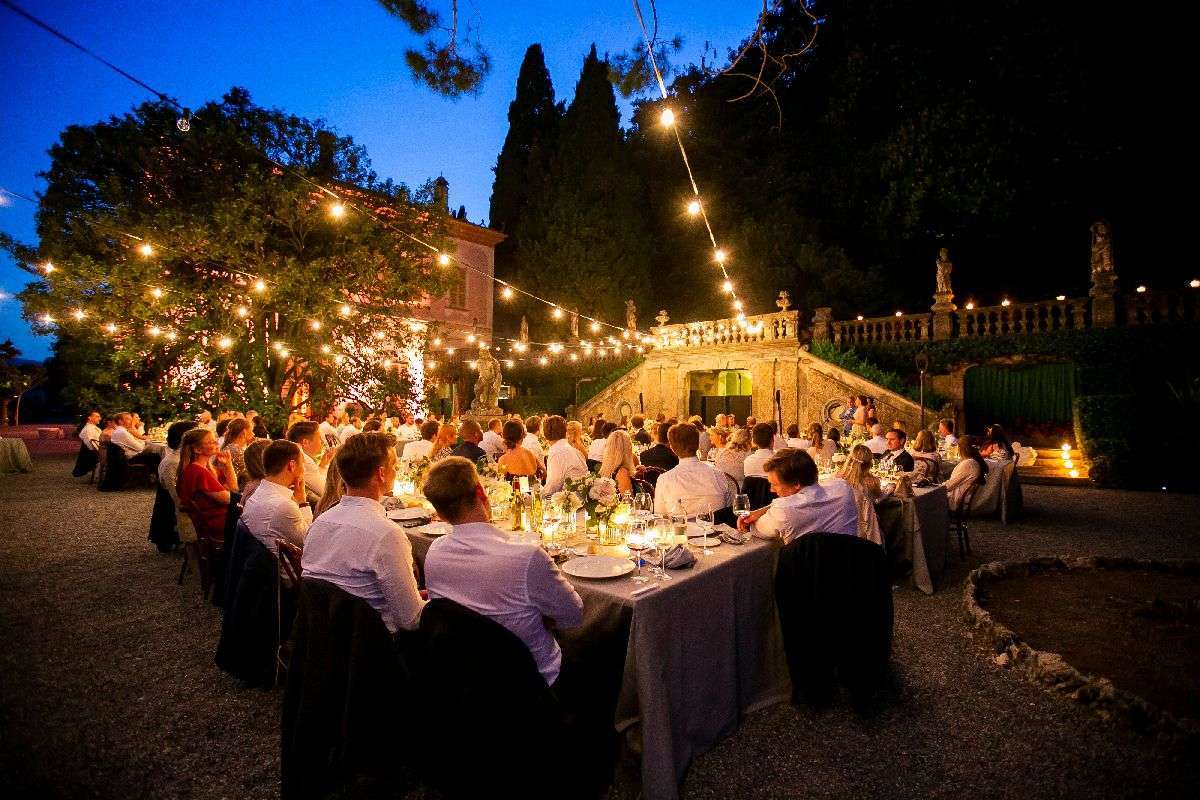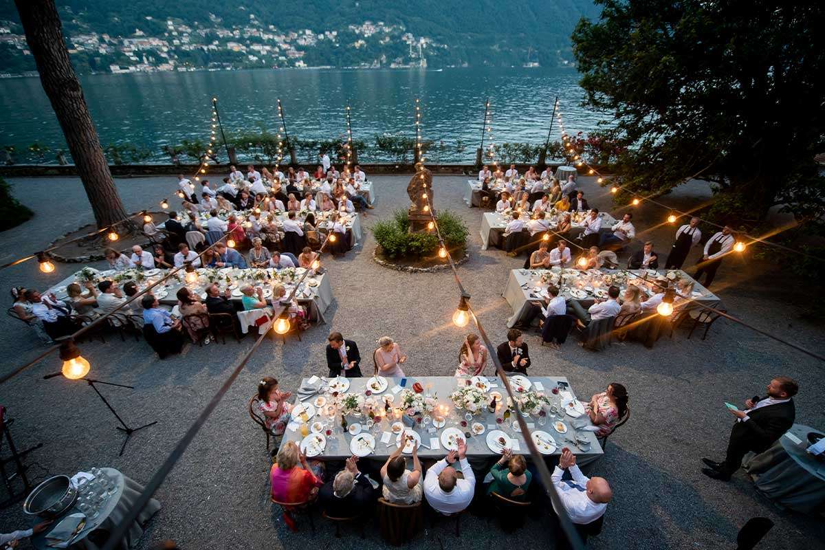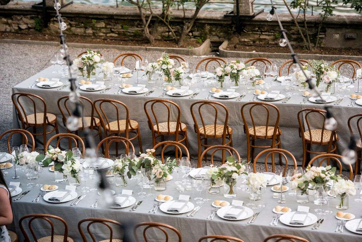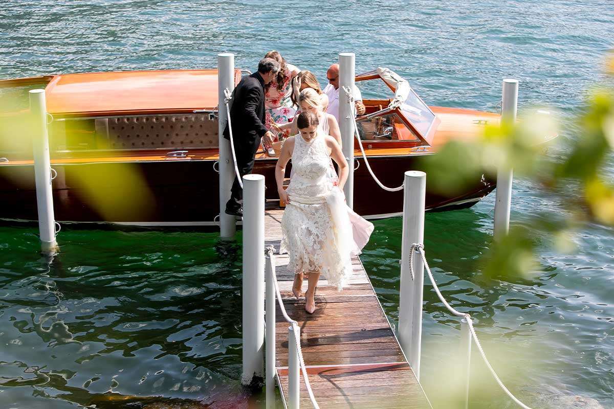 In the evening, we worked hard to create a romantic, intimate and almost rural atmosphere that left everyone breathless: the bride, the groom and their guests dined outdoors, illuminated by strings of lights suspended above the tables and surrounded by flowers, listening to the melody of guitars and mandolins played by musicians from Capri, which made the atmosphere even more magical. At the end, everyone moved inside the villa and danced until late, almost as if they didn’t want the evening to end. The next day, the bride and groom took a ride on the historic Concordia, an old-fashioned steamboat that made their experience on Lake Como even more exclusive.