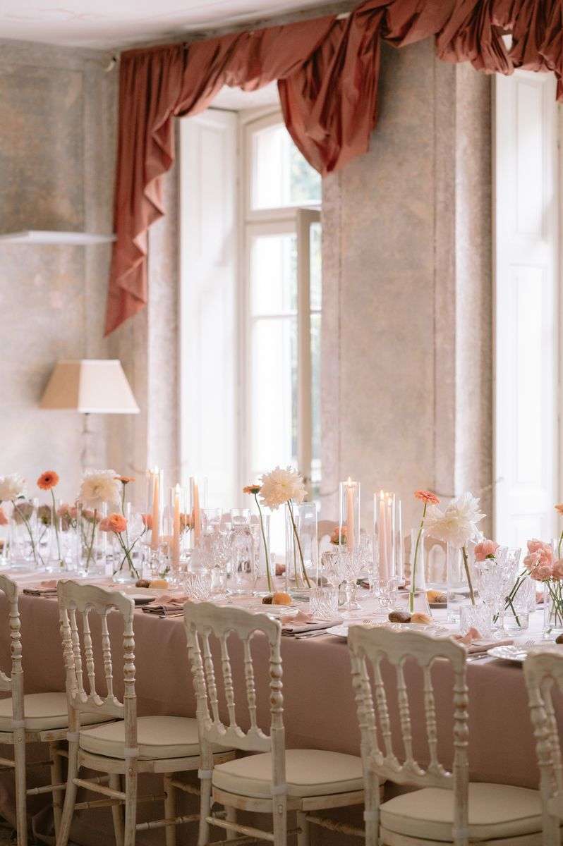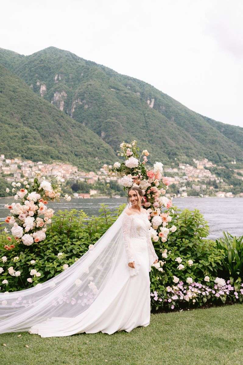 The choice of location fell on the romantic Villa Regina Teodolinda, which, with its dusty colors and timeless charm, inspired the entire event’s palette. From the bouquet flowers to the enchanting arch framing the exchange of vows, every petal was tinged with powder pink, perfectly complementing the bride’s delicate tones.