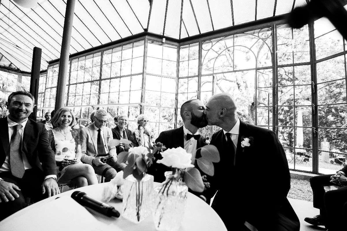 The grooms decided to celebrate their union inside a greenhouse with a surreal atmosphere, and this location conferred a fairy aura to the ceremony, which was celebrated by a dear friend of theirs. After all, a wedding with the beloved person is a dream come true, and my aim as a wedding planner is to make the couple feel the protagonist of a wonderful dream.