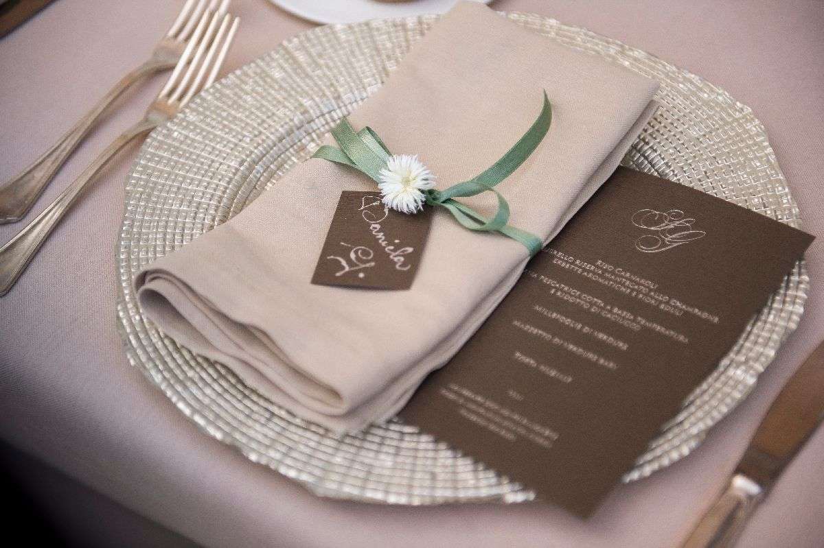 On their arrival at Villa del Grumello, the grooms and guests gathered in the forecourt of the villa, where an imperial table was decorated to the smallest detail in shades of brown: the menus and place cards made of Japanese paper and hot-etched were also brown, as were the candles and the packaging for the gift the bride and groom wanted to give their friends and relatives: a book about the history and culture of the LGBTQ+ community world, a theme that is obviously very close to their hearts.