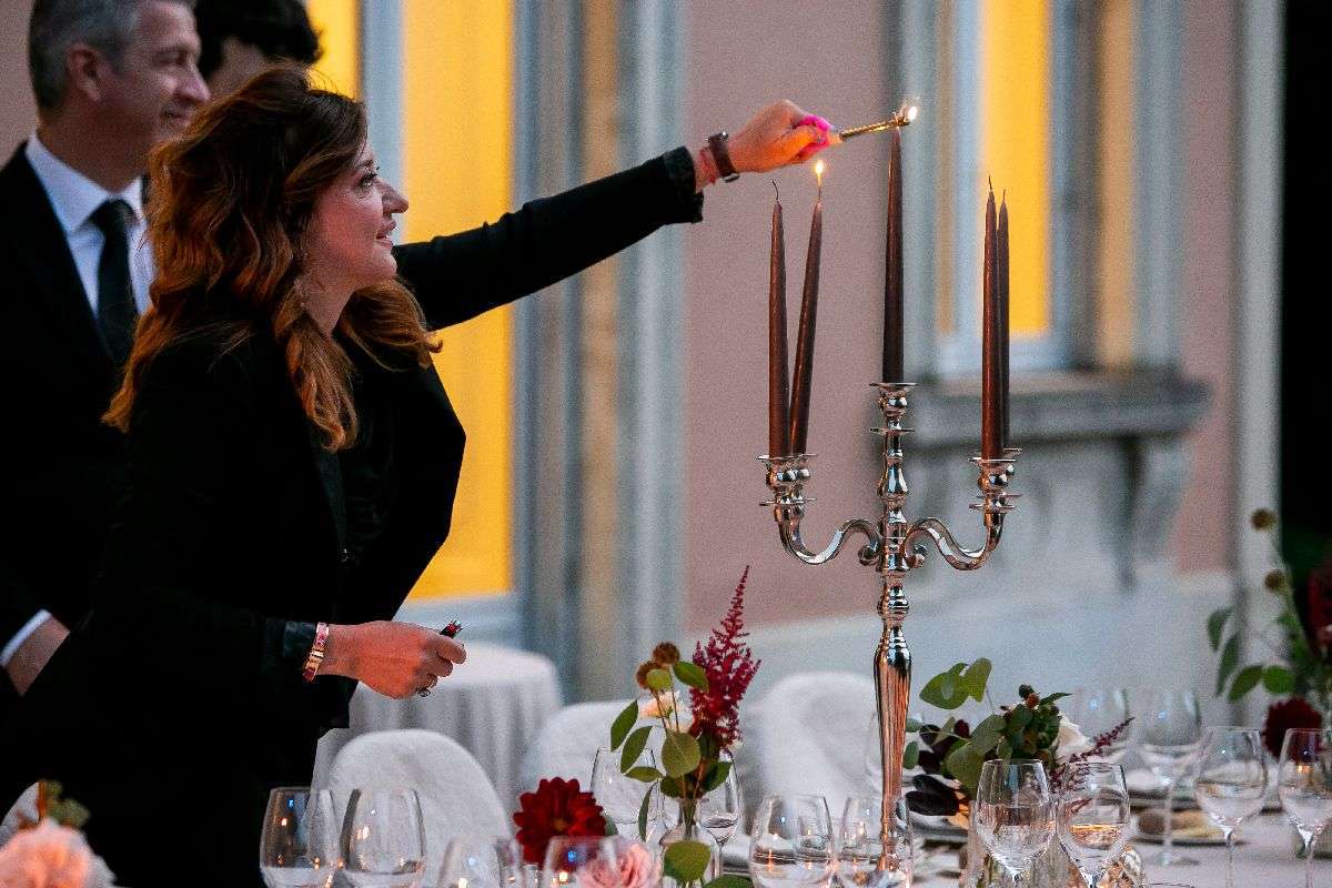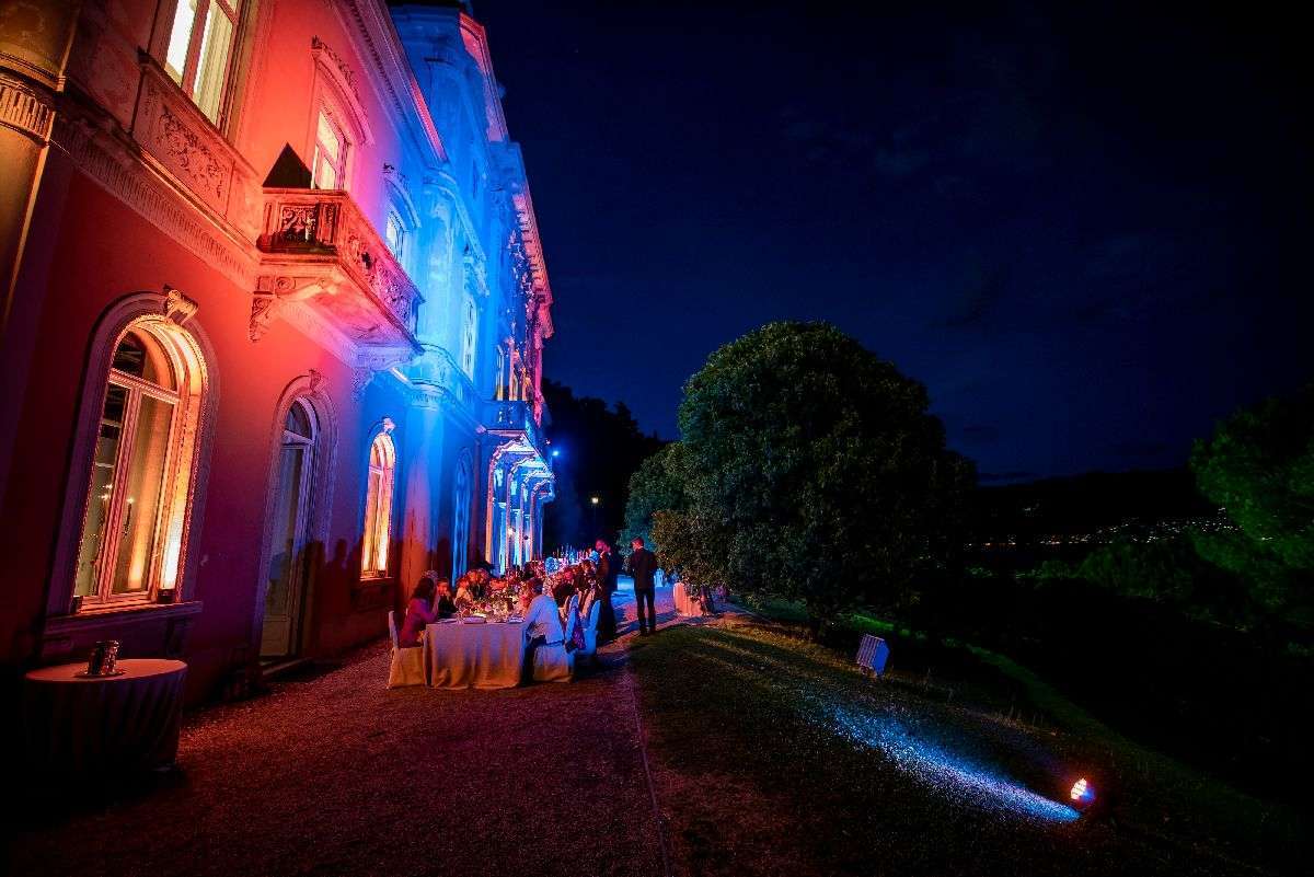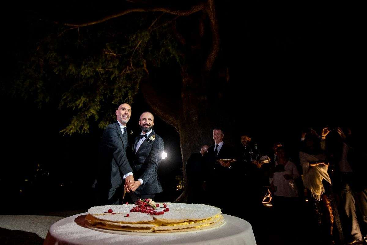 In the evening, the colourfully lit façade of the villa provided the background for the dinner, after which it was the time for the wedding cake: but it did not came out already assembled and decorated as traditionally; instead, the chef realized the mille-feuille cake right in front everyone on the spot, and this left the guests breathless. Gianfranco and Stefano’s wedding was for sure one of the most moving I have ever done, and the one that remembered me best the reason why I love my job: the joy within the grooms’ eyes when they understand that their most important day has turned out perfect.