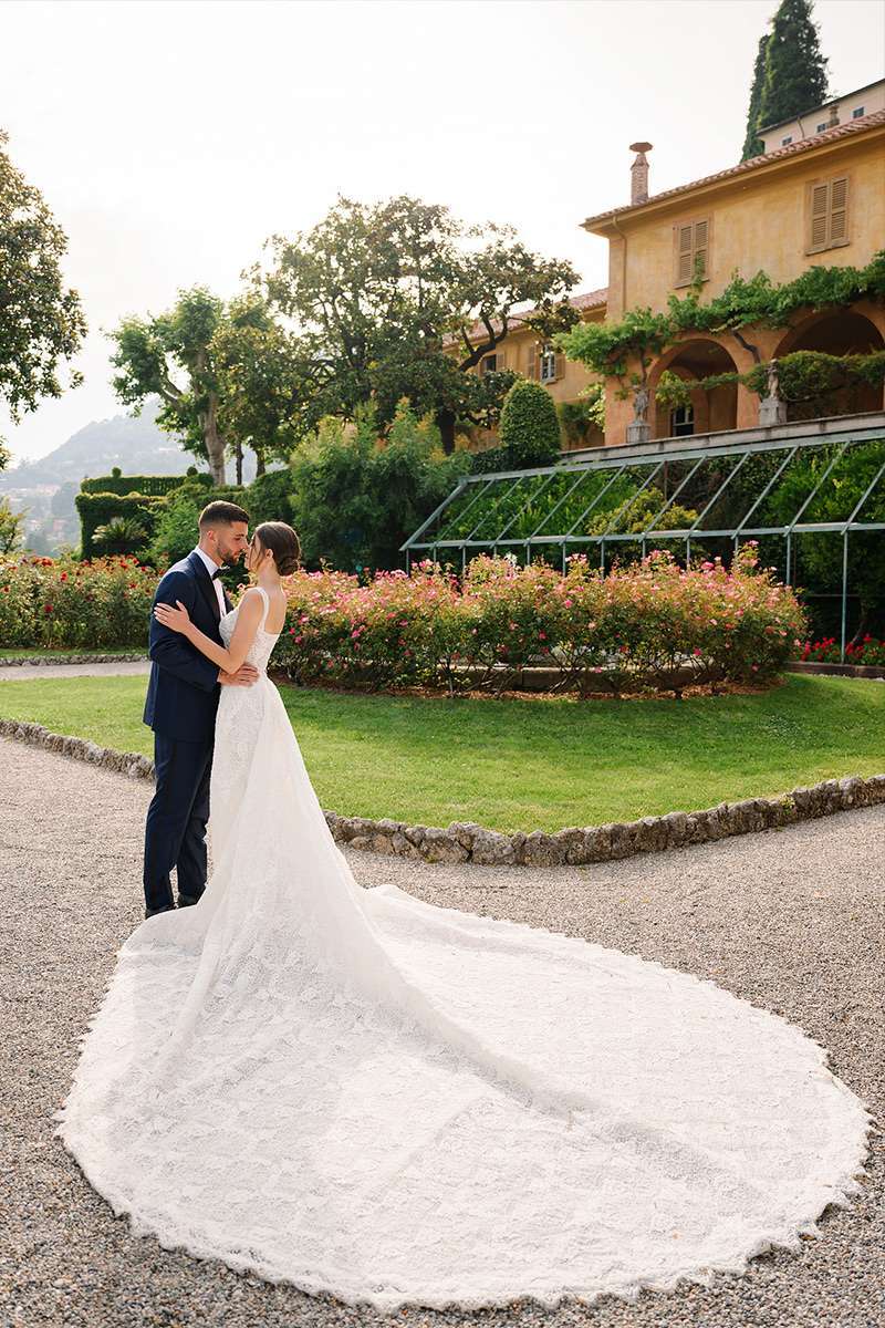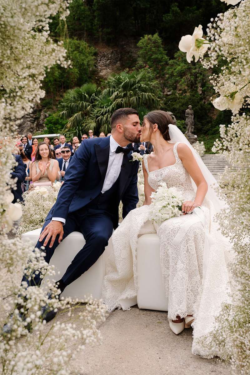 Greta and Patrick’s wedding was a true fairytale, set against the stunning backdrop of Lake Como at the beautiful Villa Pizzo. The couple’s love story began with a magical proposal one year earlier, when Patrick, a football player for Como, got down on one knee in front of the charming church in Carate Urio, setting the stage for an unforgettable celebration of their love.