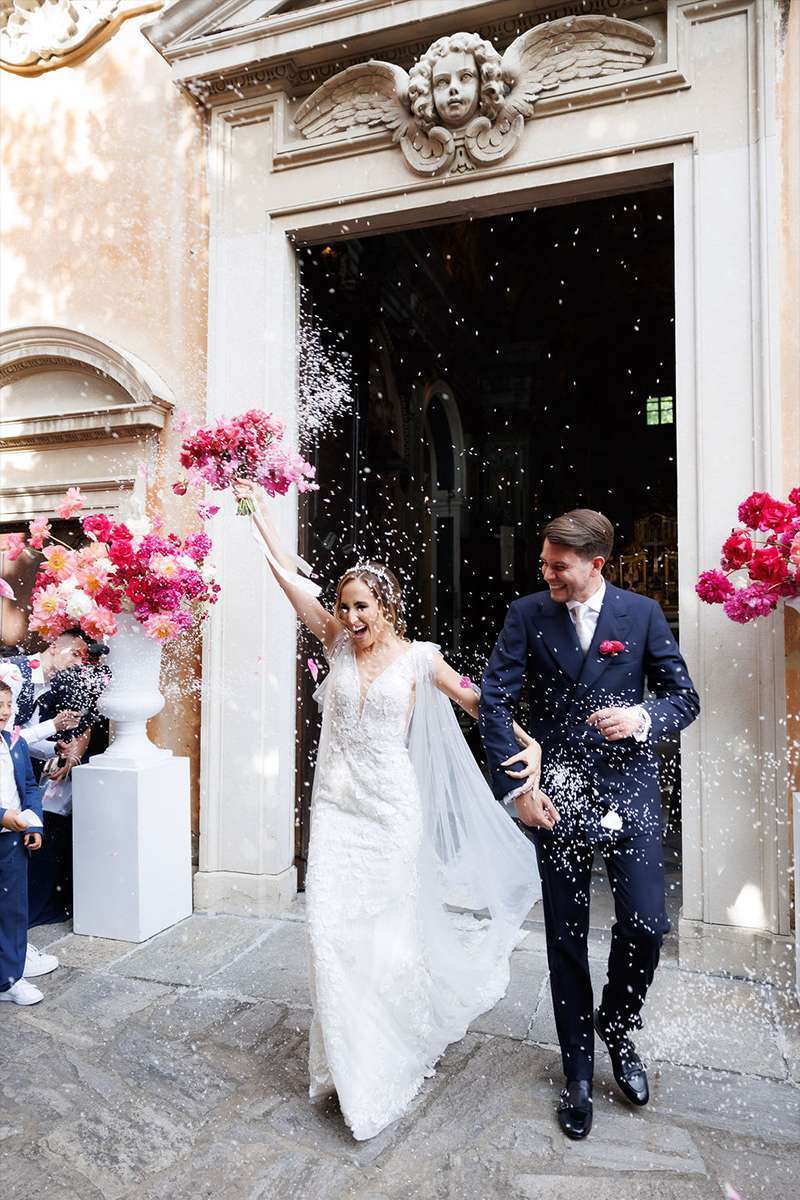 The celebration began with a beautiful ceremony at a charming local church, where the couple exchanged their vows surrounded by family and friends. The villa’s grand atmosphere provided the perfect setting for the reception that followed, creating an elegant and timeless backdrop for their special day.