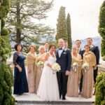 Villa del Balbianello, and in particular its Loggia Durini, are well known abroad for being the setting for numerous Hollywood productions, including one of the most famous chapters of the 007 movie series: Casino Royale, of which our groom Robin is a big fan. Therefore, it was particularly emotional for the couple to celebrate their wedding there, with a very intimate ceremony attended only by their closest family and friends. Because of the exclusivity of this ceremony, it was possible to create outfits for all the guests that made the colour harmony of the event a perfect one: on the one hand, all the women wore beige dresses of the same style and, on the other hand, all the men wore the same type of blue suit.