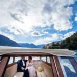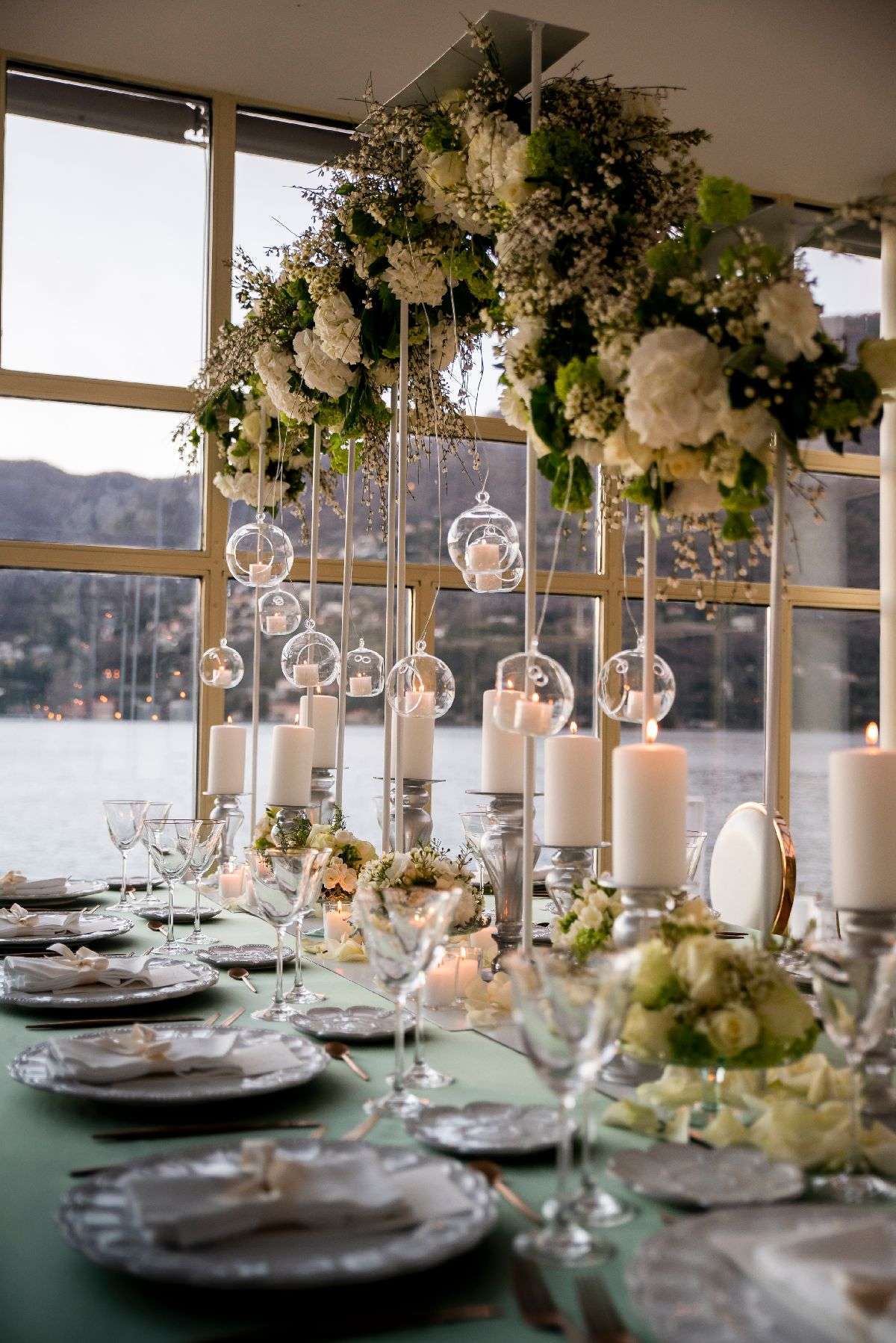 After the ceremony, the bride, groom and guests raised a toast in a historic bar in Bellagio, and then went to a special restaurant on the lake, Momi, all surrounded by windows, something that allows a dream view. Here too, the Wedding Planner‘s expert eye plays a key role: with great attention to detail, the various pieces of furniture and knick-knacks in the restaurant that didn’t match the colours and style of the protagonists were replaced with other items carefully chosen by me. After that, I turned my attention to the actual decorations, such as the flower structures hanging on the table, which, surprisingly, made the atmosphere even more picturesque.
