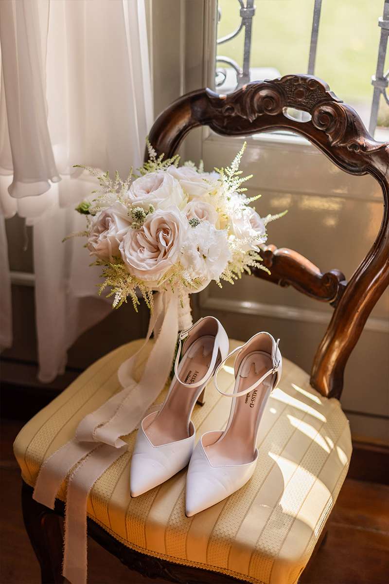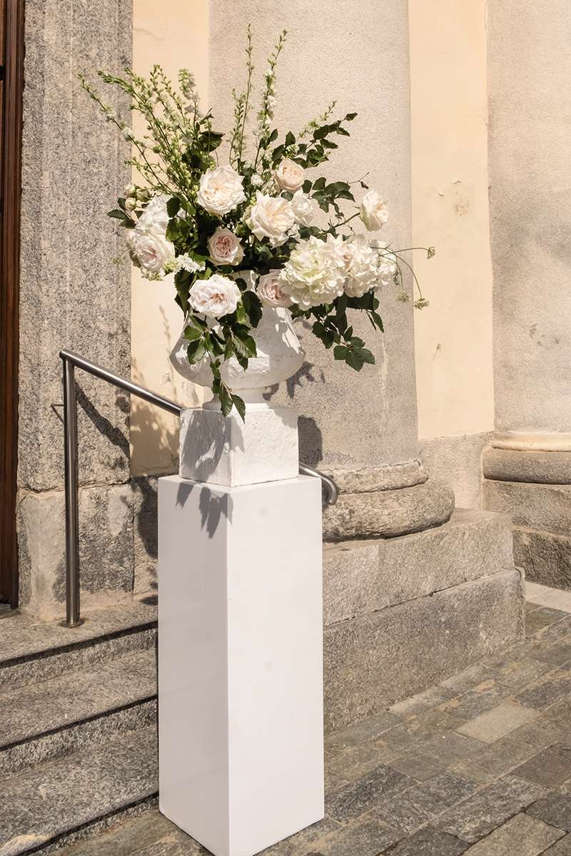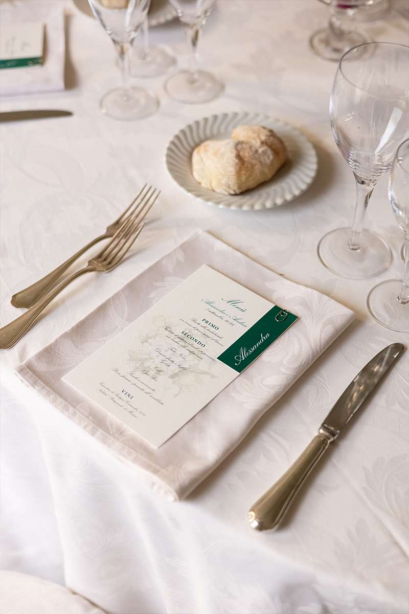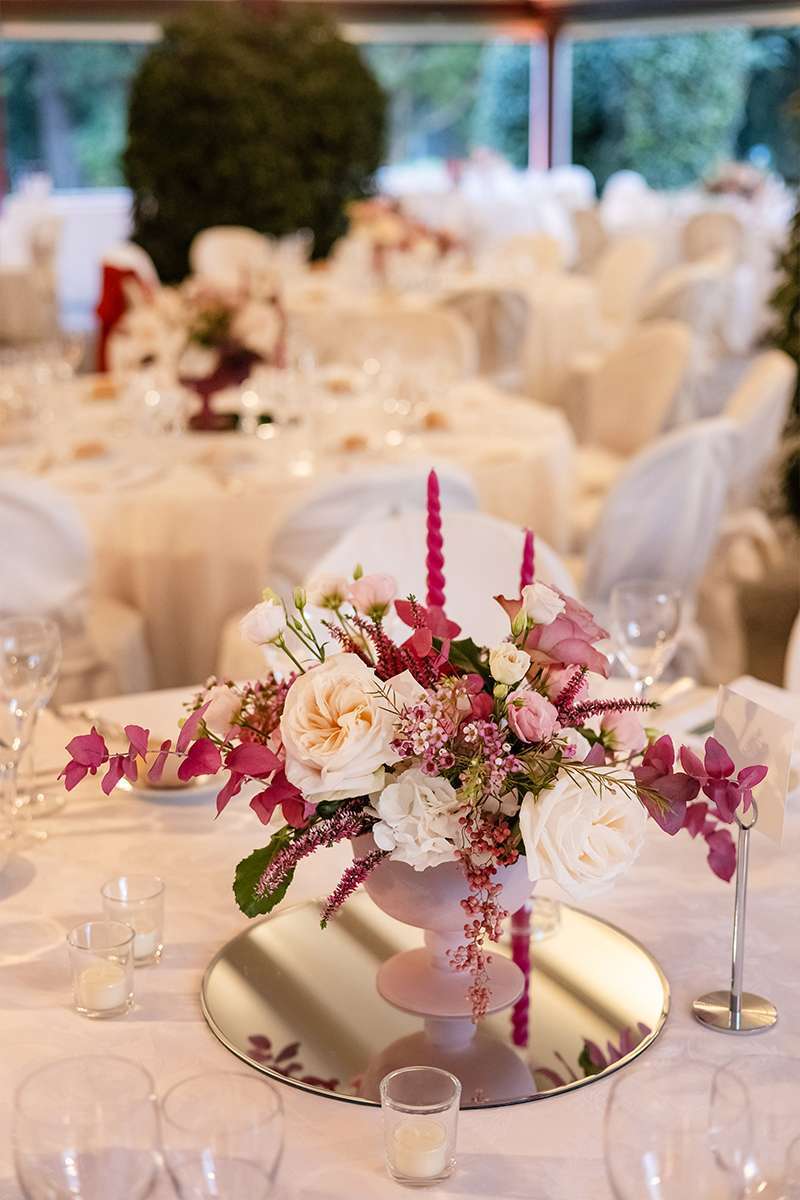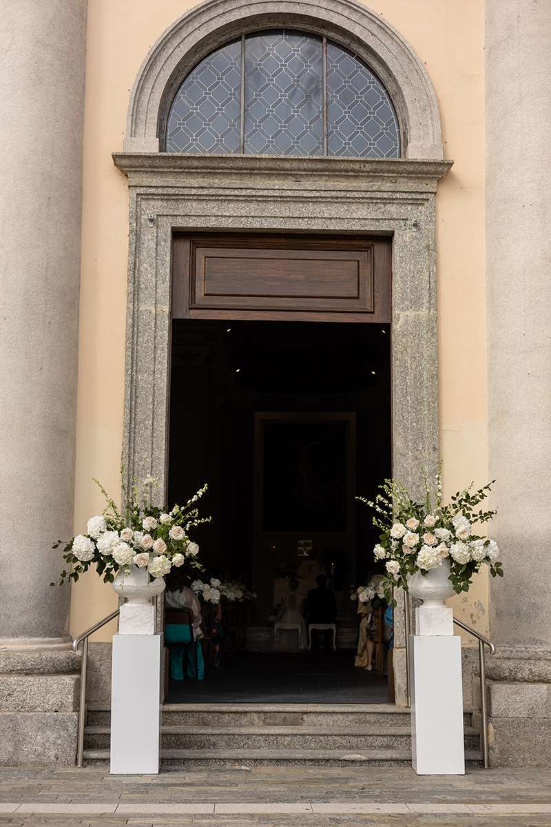 Their special day began with a beautiful ceremony at the Church of Montorfano, a peaceful and historic setting that perfectly matched the couple’s style. Alessandra looked absolutely radiant in a breathtaking wedding gown from Le Spose di Nicole. The floral arrangements, created by Fiori e Foglie, added a magical touch to the day. The vibrant blooms and lush greenery enhanced the romantic atmosphere, and every detail was carefully considered, from the ceremony decor to the table flowers.