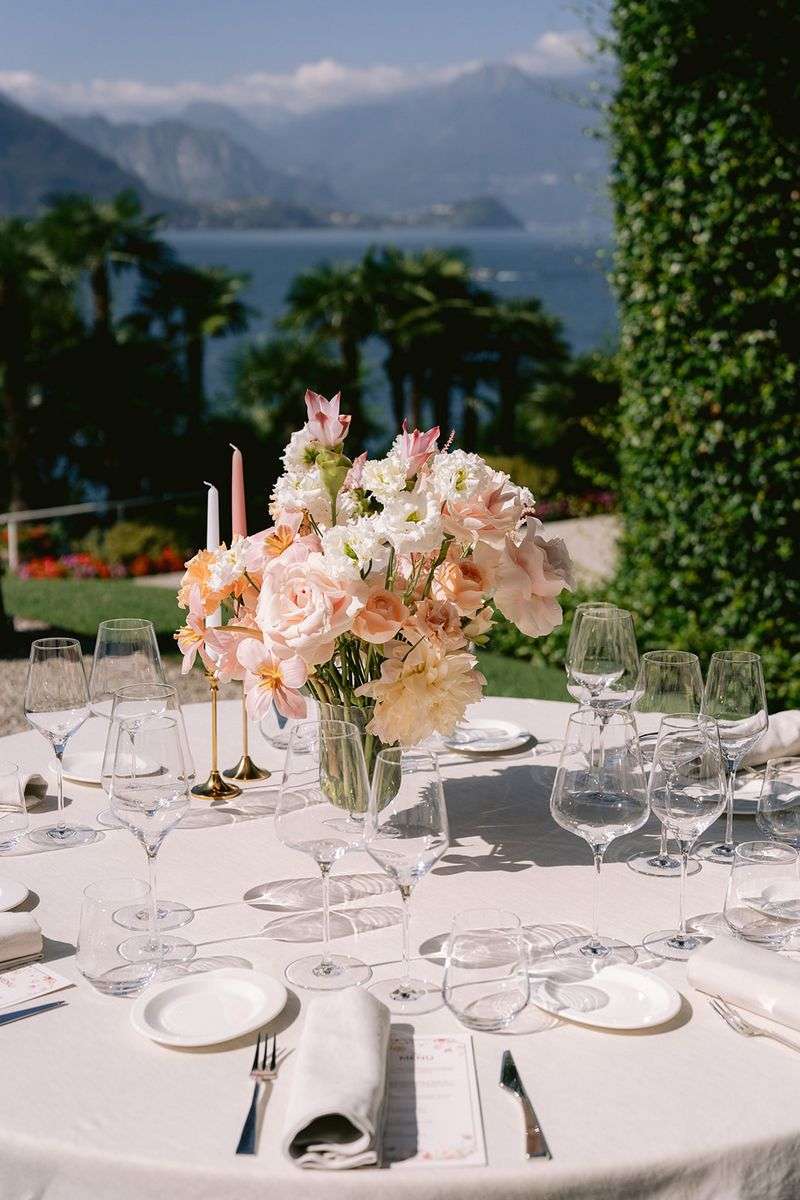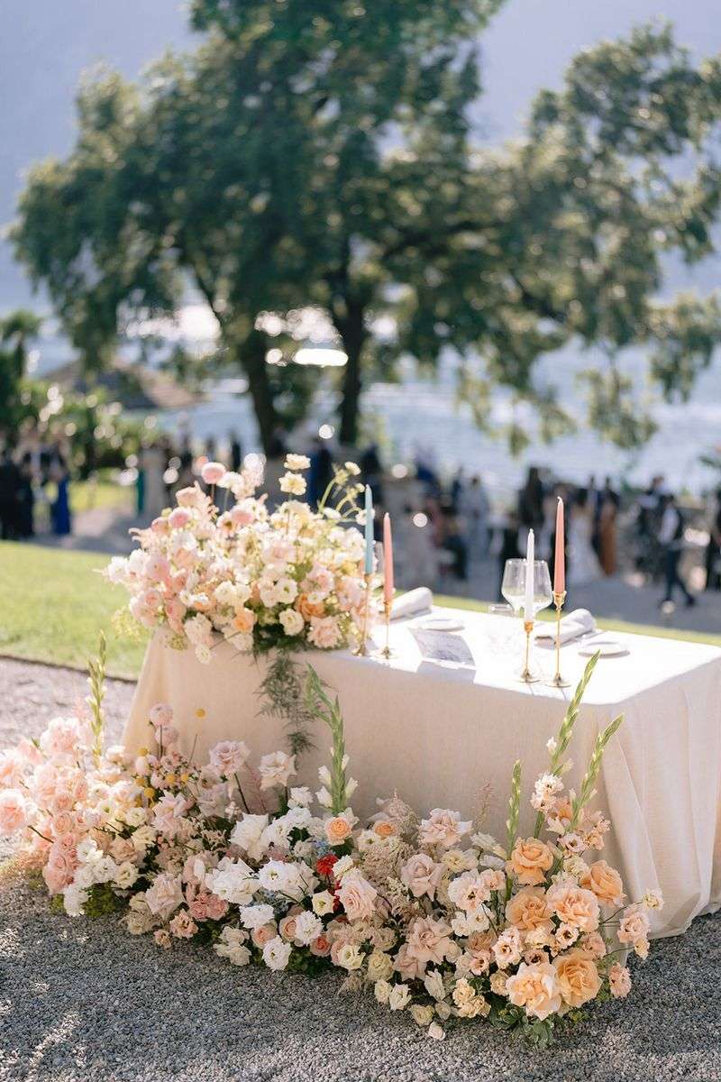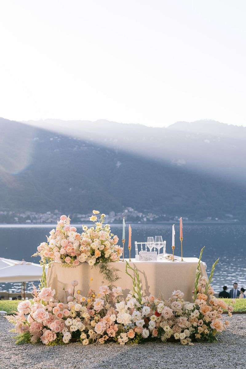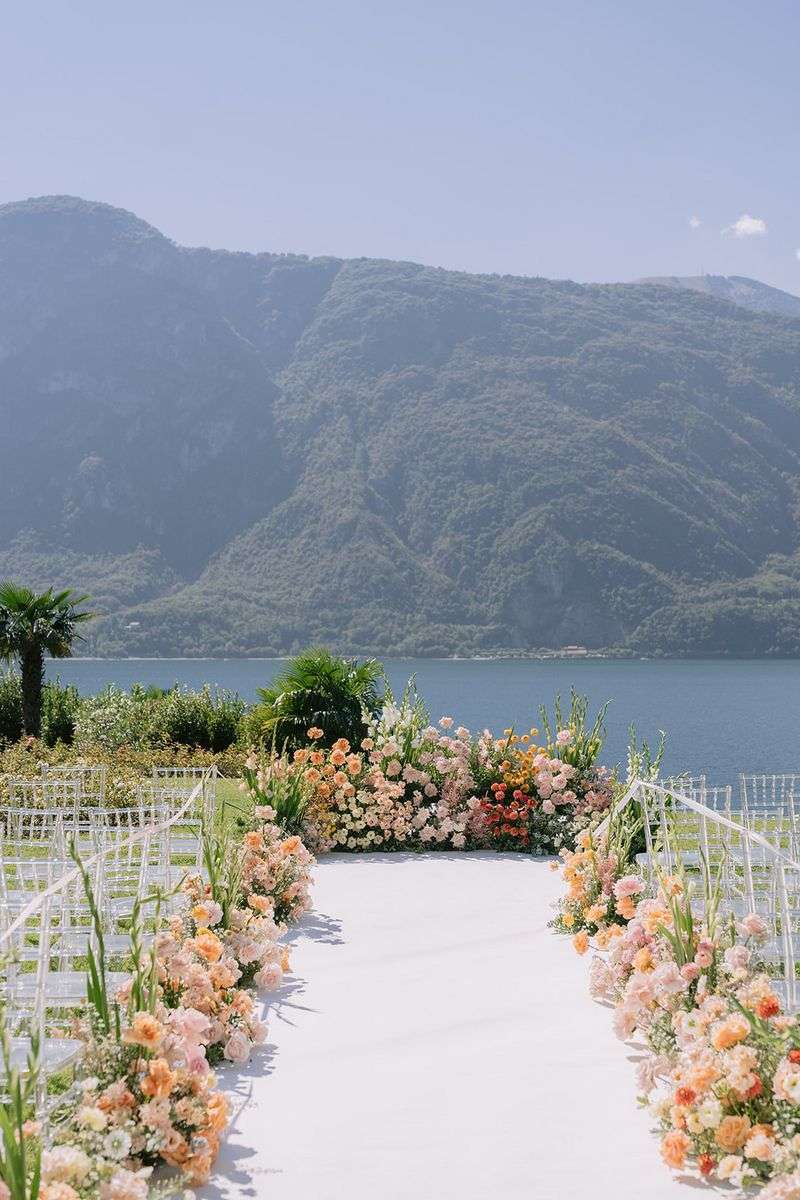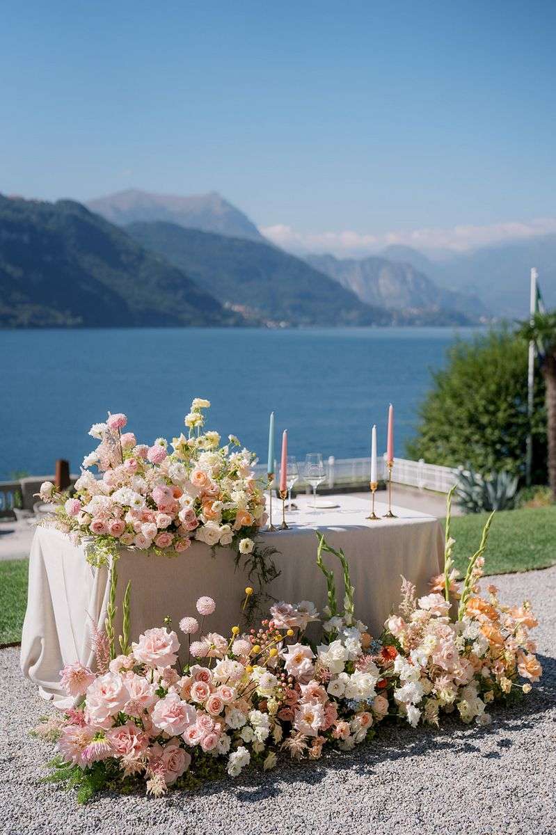 Per la cerimonia, Lake Como Fiorist ha contribuito a creare un’atmosfera fiabesca: gli sposi hanno attraversato una navata all’aperto delineata da fiori dai colori delicati; un semiarco a terra ha aggiunto un tocco di romanticismo al loro scambio delle promesse. I colori pastello hanno dipinto la scena, creando un’atmosfera delicata e raffinata che ha incantato tutti gli ospiti. Durante la cerimonia, nessun telefono in vista, solo occhi brillanti di emozione fissi sulla coppia che coronava il loro amore. Dopo la cerimonia, un aperitivo ha deliziato gli ospiti, preparandoli per una cena all’insegna dell’eleganza e della raffinatezza.