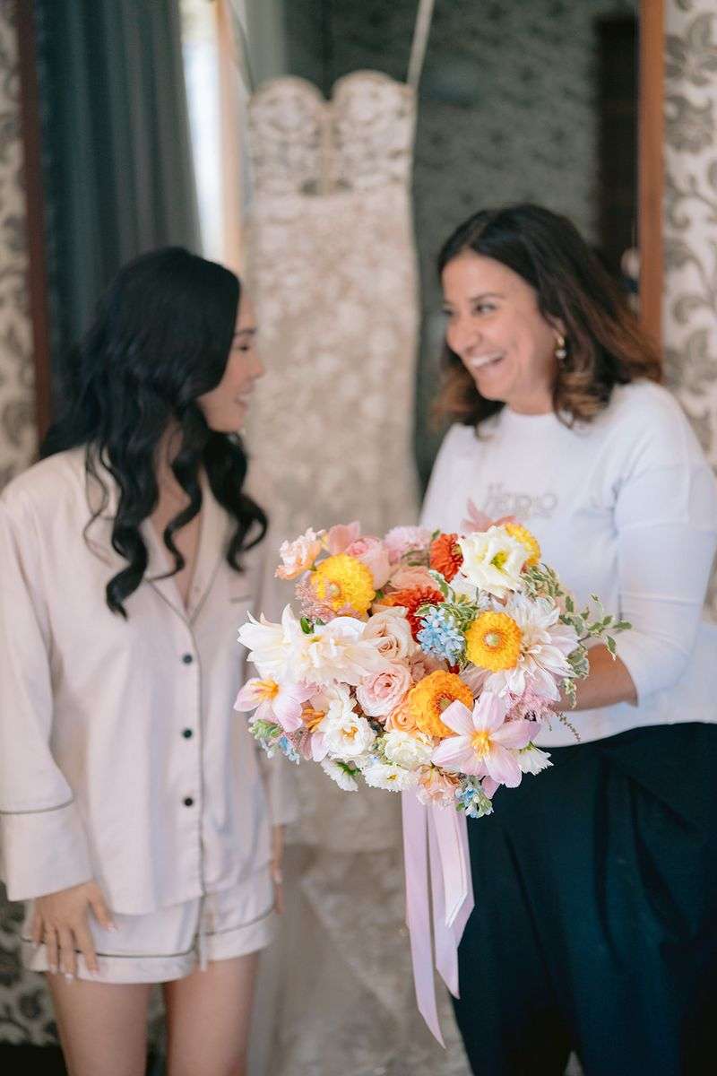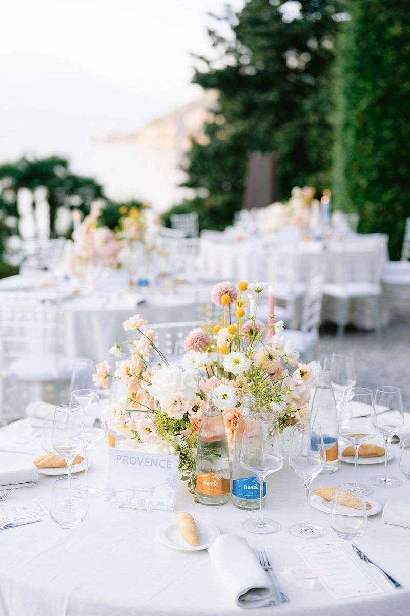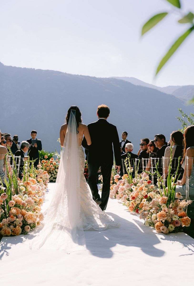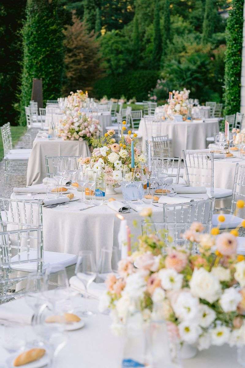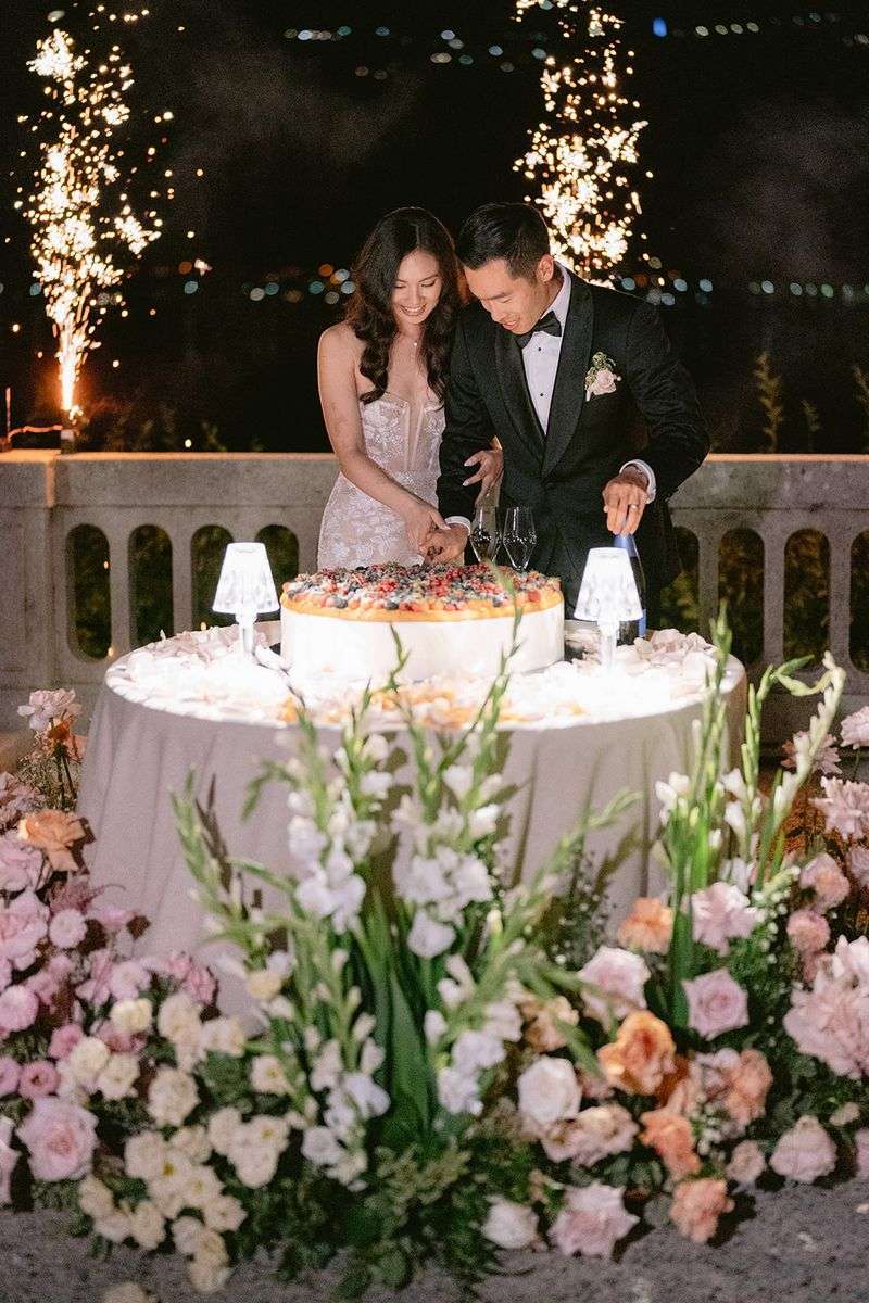 Per la cerimonia, Lake Como Fiorist ha contribuito a creare un’atmosfera fiabesca: gli sposi hanno attraversato una navata all’aperto delineata da fiori dai colori delicati; un semiarco a terra ha aggiunto un tocco di romanticismo al loro scambio delle promesse. I colori pastello hanno dipinto la scena, creando un’atmosfera delicata e raffinata che ha incantato tutti gli ospiti. Durante la cerimonia, nessun telefono in vista, solo occhi brillanti di emozione fissi sulla coppia che coronava il loro amore. Dopo la cerimonia, un aperitivo ha deliziato gli ospiti, preparandoli per una cena all’insegna dell’eleganza e della raffinatezza.