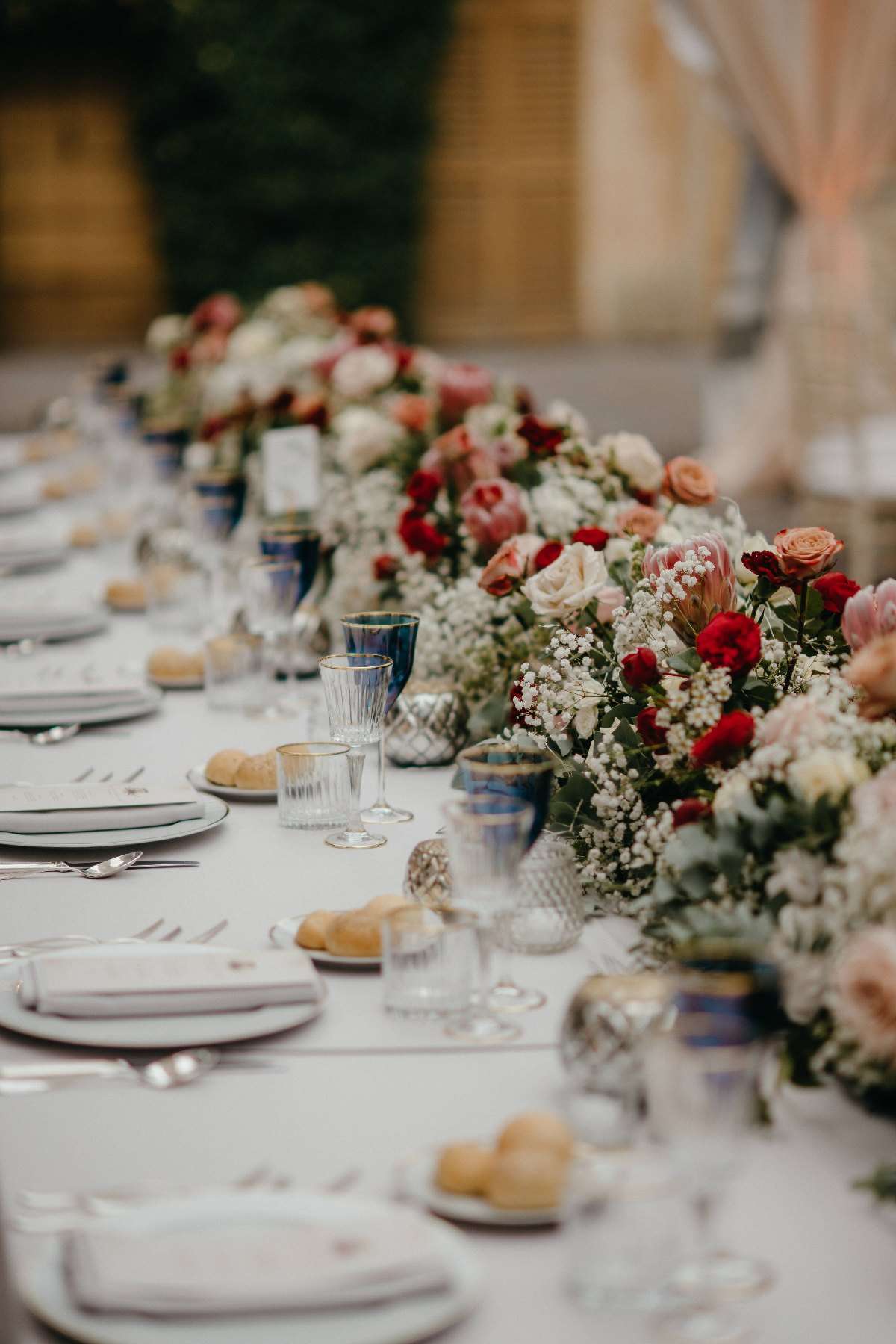 Sin da subito, Stephanie si è dimostrata una sposa che sa cosa vuole e così, nella decorazione, l’abbiamo aiutata a mettere da parte il tradizionale monopolio del bianco, per osare con dei colori più accesi come il rosso, in particolare nel caso dei fiori. Decisamente originali sono state anche alcune idee che gli sposi hanno avuto, come quella di far realizzare una panchina in legno che gli ospiti dovessero firmare e che loro potessero portare a casa, in modo che potesse rimanere un ricordo indelebile di quel momento di gioia.